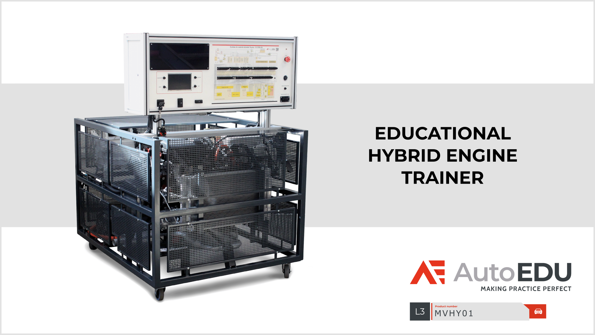 Fully operational hybrid electric system with petrol (gasoline) internal combustion engine mounted in a mobile frame. The hybrid system is designed to demonstrate the internal combustion engine, electric motor, gearbox and structure of the rechargeable energy storage system. The educational training engine is based on Toyota original (refurbished) engine.