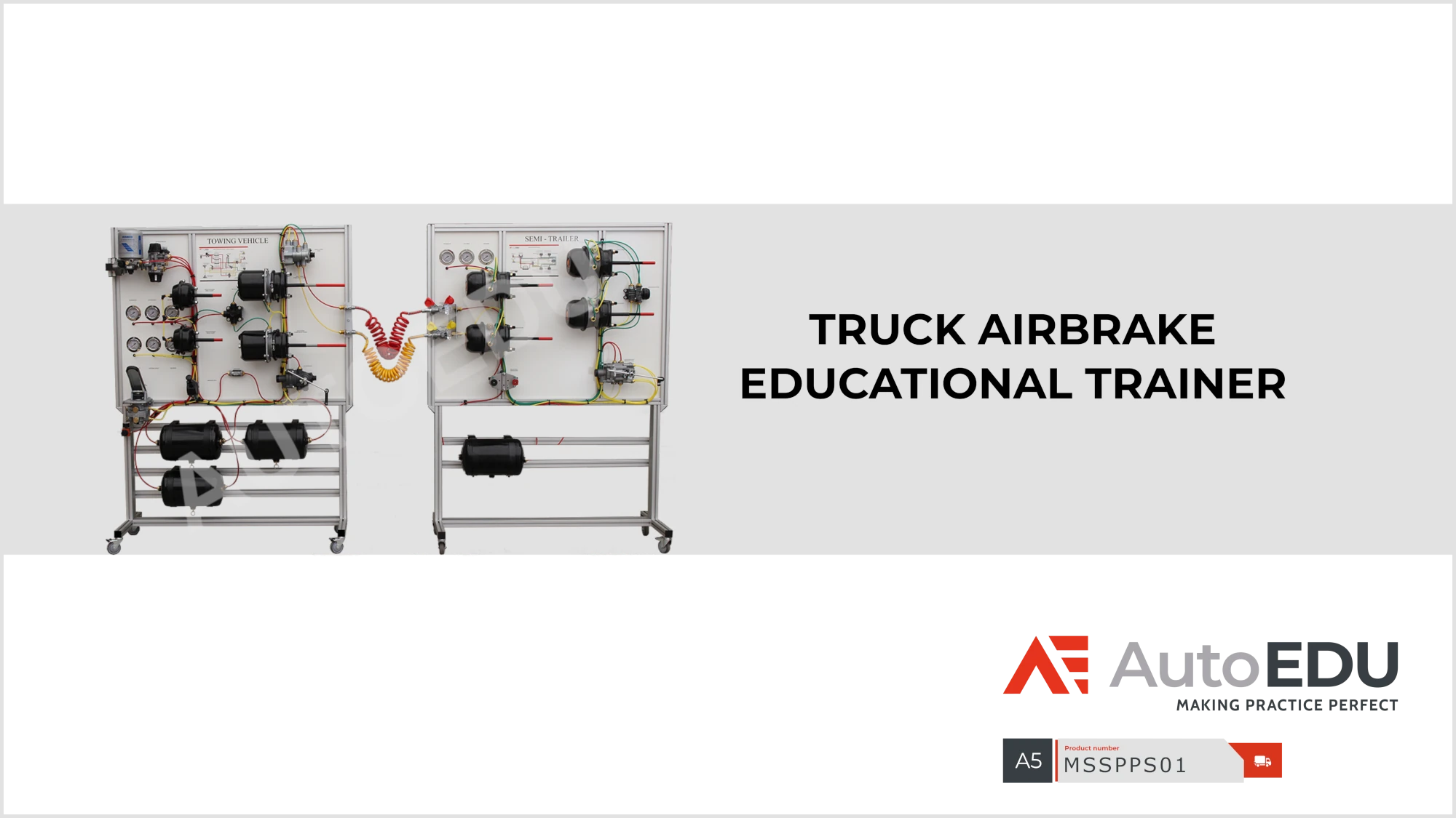 The Truck Airbrake Educational Trainer is designed to provide automotive students with a detailed understanding of truck and trailer pneumatic systems. This training device is crafted using genuine components to replicate real-world configurations, ensuring students are well-prepared for the complexities of the industry.